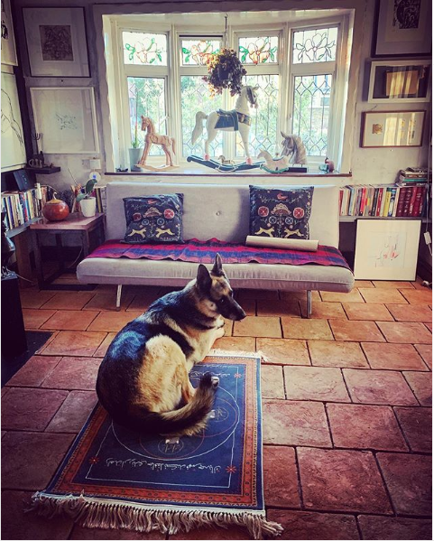 Some of the pictures also include his German shepherd, Shahoo, in his wonderfully rustic and ornate house.