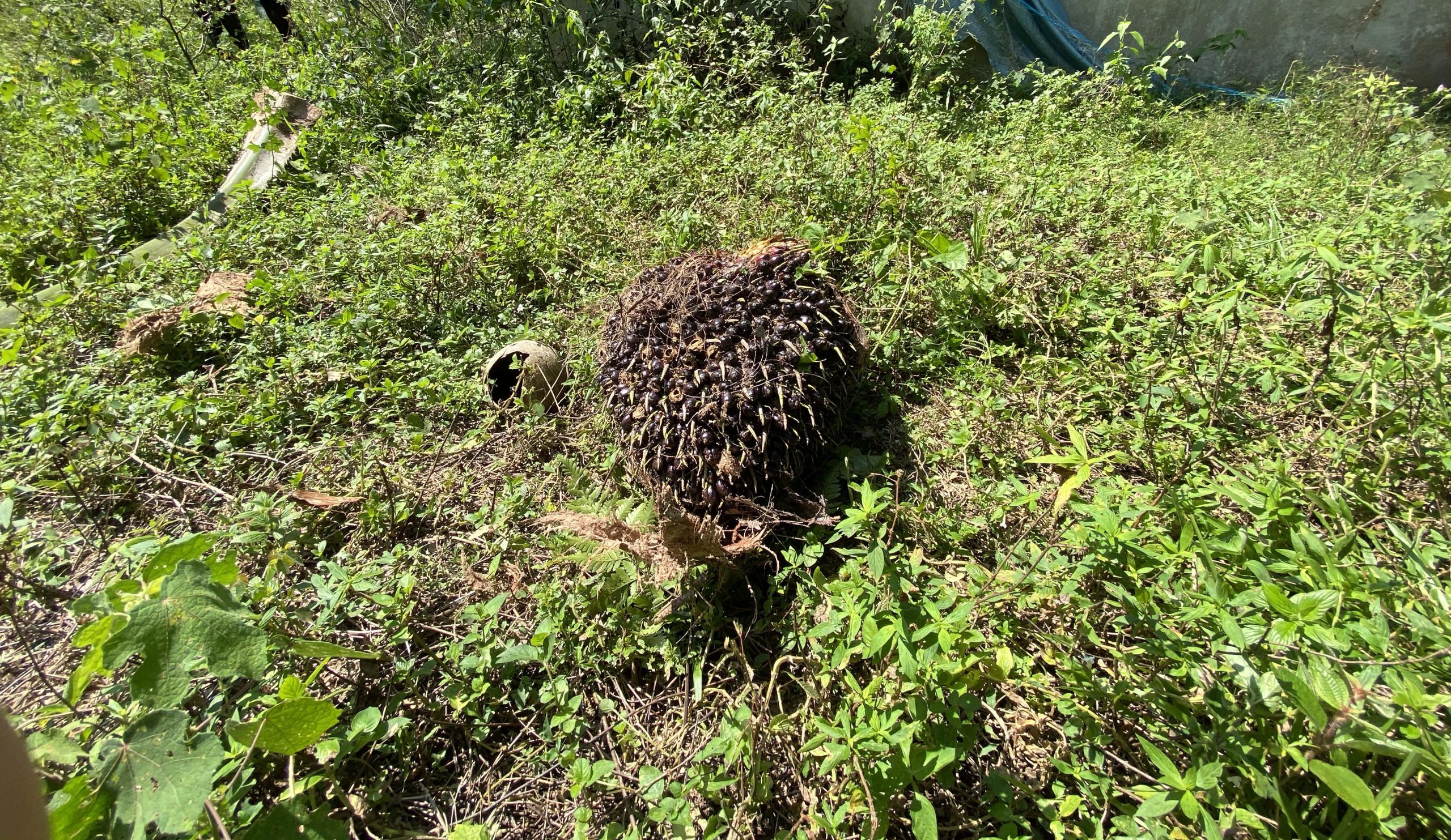 An oil palm stem, one stem can weigh as much as 10kgs.